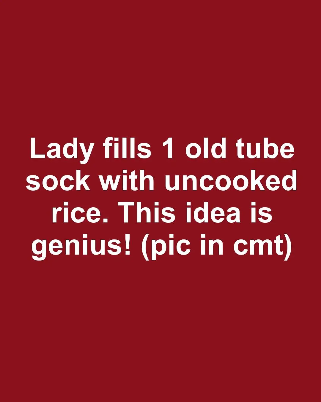 Lady fills 1 old tube sock with uncooked rice. This idea is genius!