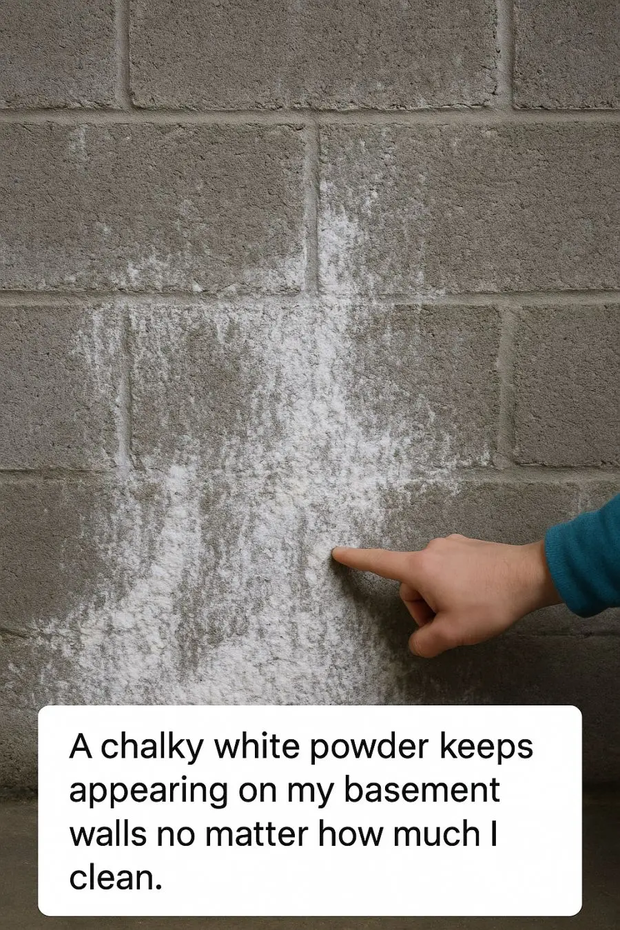 A chalky white powder keeps appearing on my basement walls no matter how much I clean. What’s the fix for this?