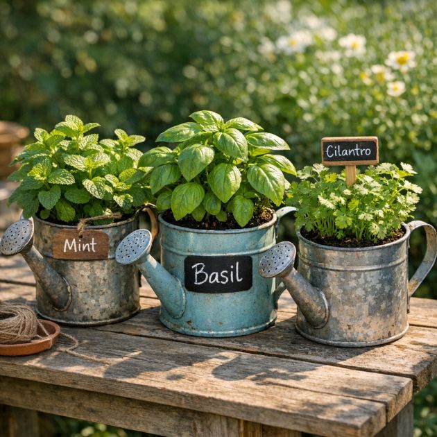 Watering cans can serve as excellent containers for growing herbs, providing a portable and decorative option for your culinary garden. Choose a sunny spot where the herbs will receive adequate light. Drill drainage holes in the bottom and fill the can with well-draining potting mix.