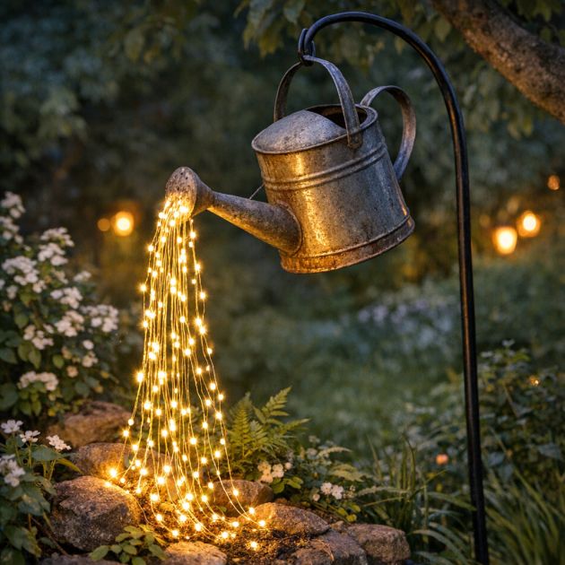 Hang the can from a tree branch or shepherd’s hook, creating the illusion of pouring light into the garden. This enchanting feature adds a warm glow to outdoor areas, perfect for evening gatherings or quiet nights under the stars.