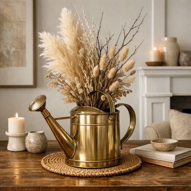 Old watering cans can be transformed into striking indoor vases or unique home décor pieces. Clean the can thoroughly and paint or polish it to match your interior style. Fill it with fresh or dried flowers to create a centerpiece for your dining table or mantel.