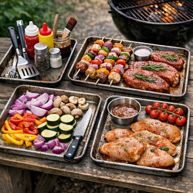 Old baking sheets can be used as part of a portable grilling station for outdoor cooking. Use them to hold grilling utensils, condiments, and prepared food items ready for the grill. Their sturdy metal construction withstands outdoor conditions, and they can be easily transported from kitchen to grill. Additionally, consider using a baking sheet as a prep surface for chopping vegetables or marinating meats, creating a dedicated area for food preparation that keeps your outdoor space organized and efficient.