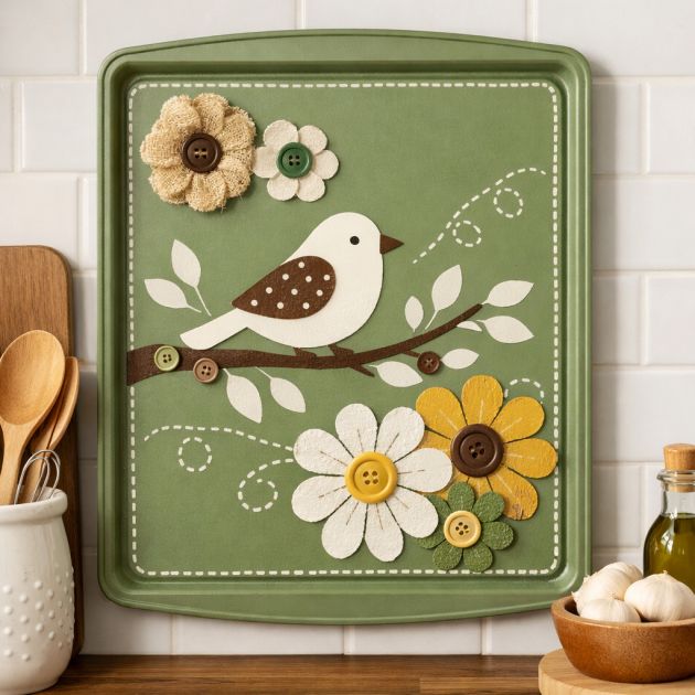 Transform your worn baking sheets into unique pieces of wall art for your kitchen. Begin by cleaning the sheet and applying a base coat of paint that matches your kitchen decor. Next, use stencils or freehand designs to create patterns or images on the sheet with contrasting paint colors. Once the paint is dry, consider adding embellishments such as buttons, beads, or fabric to give your art texture and dimension. Finally, hang your masterpiece using adhesive strips or nails, and enjoy the personalized touch it brings to your space.