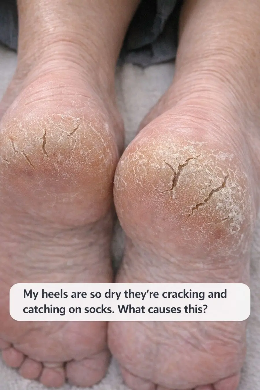 My heels are so dry they’re cracking and catching on socks. What causes this?