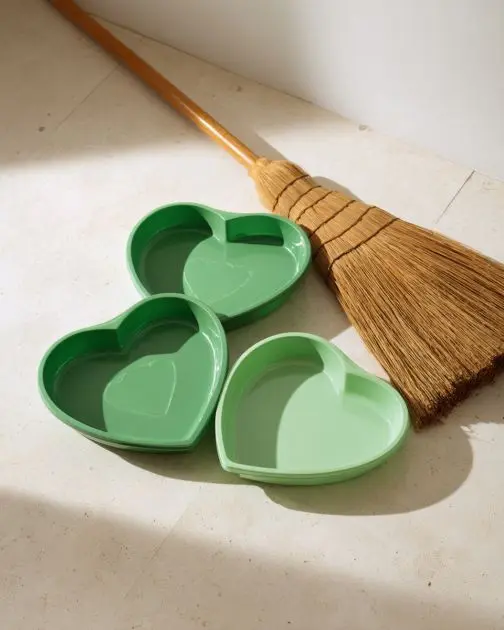 4 green plastic heart-shaped serving trays