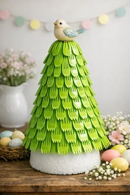 Spring Topiary Tree with Plastic Forks
