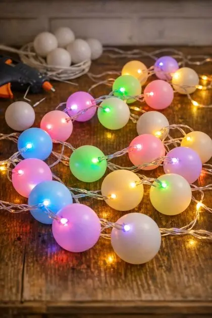 For variations, consider using string lights with different color temperatures, such as warm white for a cozier feel or cool white for a modern, sleek look. You can also experiment with different sizes of ping pong balls or even paint them for a personalized touch. For seasonal decor, use themed LED lights, like orange and purple for Halloween or red and green for Christmas. Adjust the length of your garland to fit different spaces by adding or removing ping pong balls as needed.