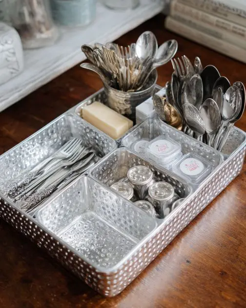Inspect your silverware trays for any sharp edges or rust. Use sandpaper to smooth out imperfections and ensure safety.