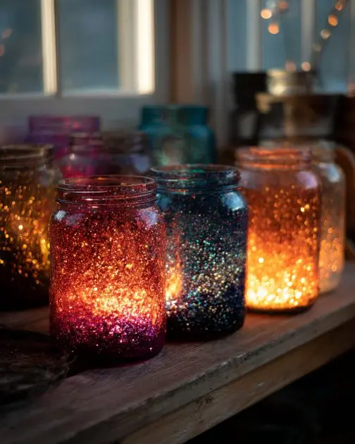 These DIY firework jars can be styled as eye-catching centerpieces on a dining table or placed on a mantelpiece to add a pop of color to your living room. Pair them with fairy lights or candles to enhance their glow, creating a warm and inviting atmosphere. For a cohesive look, use colors that complement your existing decor palette or go for a vibrant mix to create a playful and lively setting.