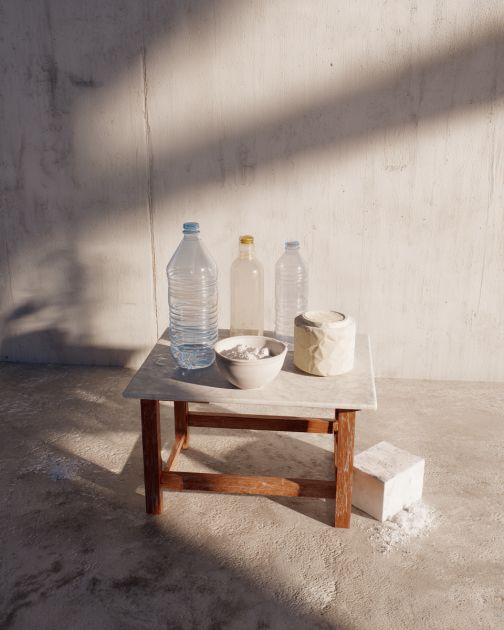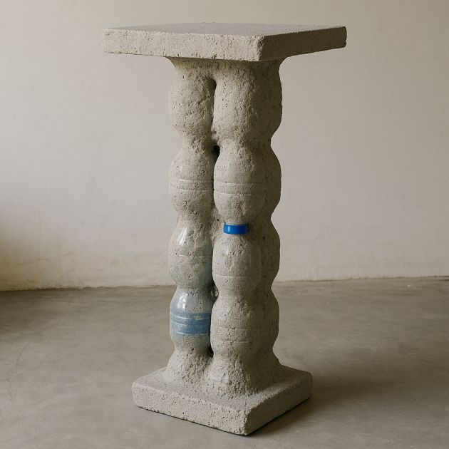 Sculptural Concrete Pedestal from Plastic Bottles