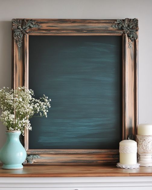 For a more vintage look, consider distressing the frame with sandpaper after painting it. You can also use stencils to add decorative elements or words around the frame. If you have a larger mirror, you can divide the chalkboard into sections using painter’s tape to create a calendar or planner. For a more interactive piece, attach small hooks or a basket to the bottom of the frame to hold chalk and erasers. This DIY project is highly customizable, so feel free to experiment with different colors and finishes to suit your personal taste.