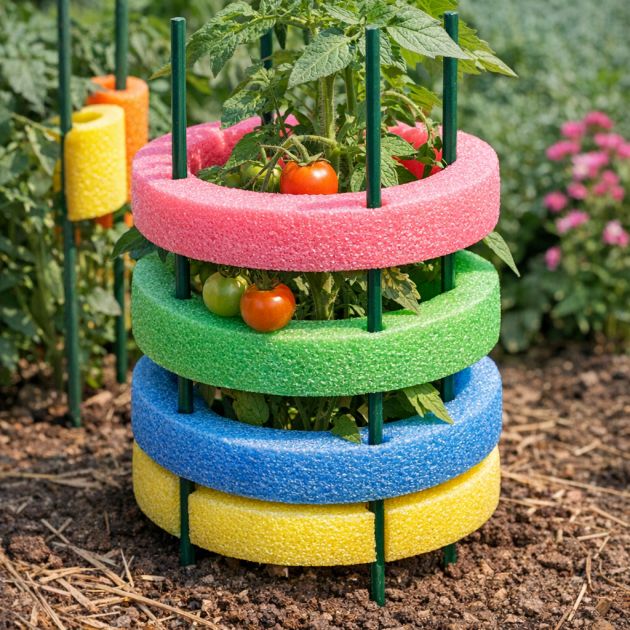 Gardeners can benefit from the versatility of pool noodles by turning them into plant supports or tomato cages. Cut the noodles into sections and use garden stakes to secure them around plants that need support. The foam provides a gentle cushion for delicate stems, reducing the risk of damage. For tomato cages, cut noodles into rings and stack them around the plant, using stakes to hold them in place. This not only supports the plant but also adds a pop of color to your garden.