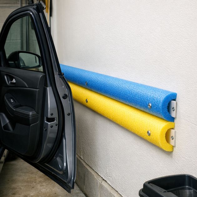 Protect your car doors and garage walls by using pool noodles as bumpers. Cut the noodles lengthwise and attach them to the garage wall at the height where your car door might open. This will prevent scratches and dents when opening car doors in tight spaces. Use strong adhesive strips or screws to secure the noodles to the wall. This simple hack can save you from costly repairs and is a practical use for leftover pool noodles.