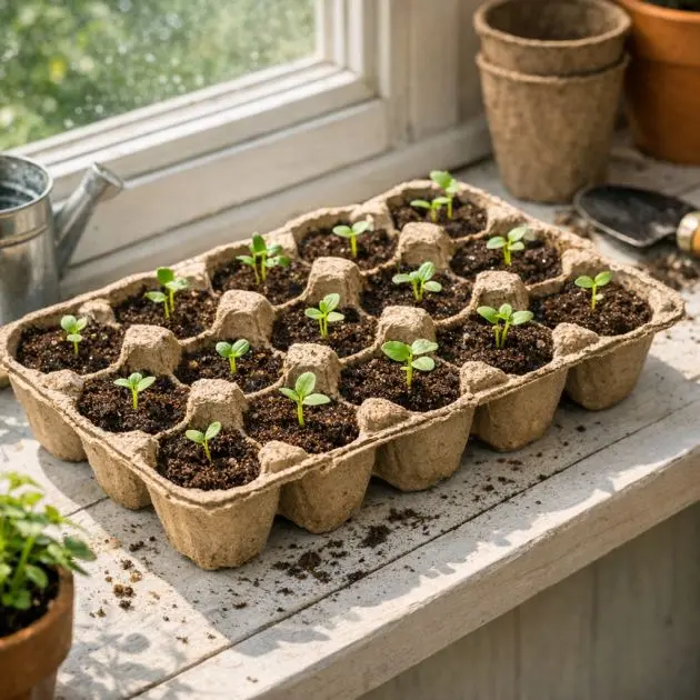 Egg cartons are perfect for starting seeds due to their biodegradable nature and individual compartments. To use an egg carton as a seed starter, fill each cup with potting soil and plant a seed about 1/4 inch deep. Water gently and place the carton on a sunny windowsill. The cardboard material will retain moisture, creating an ideal environment for germination.