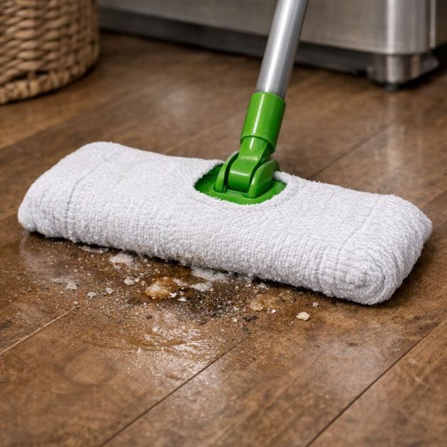 Instead of buying costly disposable mop pads, use an old sock to create a reusable cover for your Swiffer-style mop. Turn a sock inside out and stretch it over the mop head, ensuring it’s snug and secure. The sock’s material is perfect for picking up dust, dirt, and debris from floors.