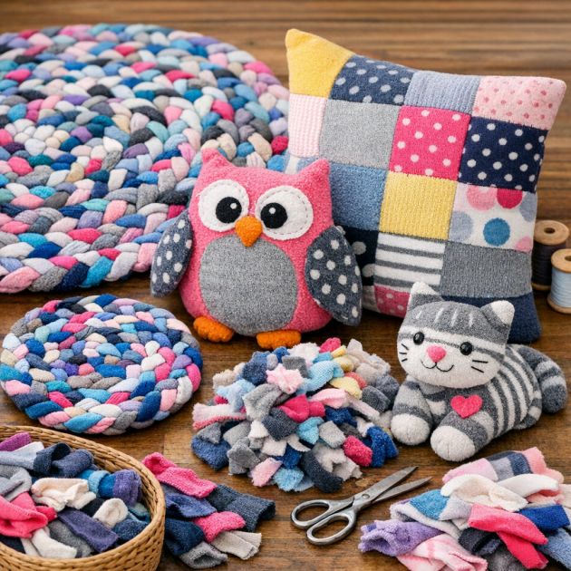Even the smallest sock scraps can be used for creative projects. Cut socks into strips and braid them together to make colorful rugs or coasters. This is a fun and eco-friendly way to create home décor from materials you already have.