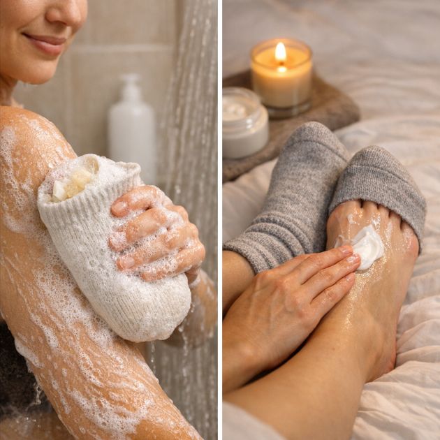 For a moisturizing treatment, apply lotion to your feet and cover them with socks overnight. This helps lock in moisture, keeping your feet soft and hydrated. These beauty hacks make use of socks in a way that’s beneficial for your self-care routine.