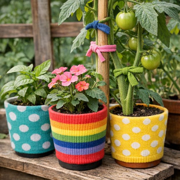 7. Use Socks as Plant Pot Covers and Gentle Garden Ties