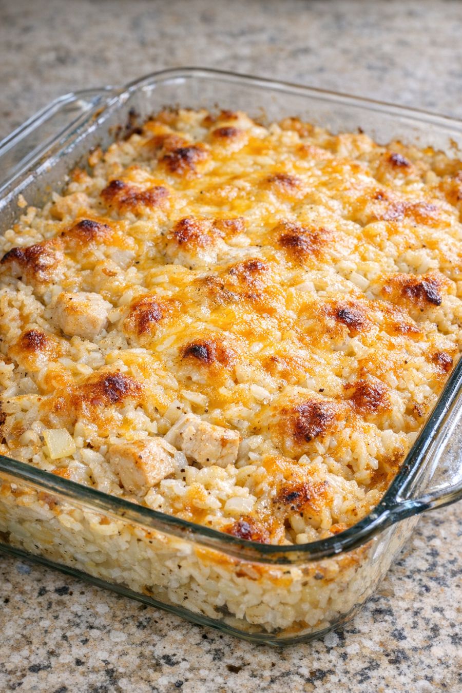 This is the kind of recipe that’s been quietly adapted in farmhouse kitchens for generations, so don’t be afraid to make it your own. If you like a creamier, richer casserole, replace 1/2 cup of the chicken broth with milk or half-and-half. For a slightly lighter version, use cream of mushroom or cream of celery soup instead of cream of chicken, or choose a reduced-sodium soup and broth if you’re watching salt. A handful of frozen peas or mixed vegetables can be scattered over the rice before adding the chicken for a built-in veggie side—no need to thaw them first. If your family likes a little extra flavor, add a teaspoon of garlic powder or poultry seasoning to the broth and soup mixture before pouring it over the rice. You can also swap the dry onion soup mix for a simple blend of salt, pepper, and paprika if you prefer a milder, more homemade seasoning. For those who grew up with the Sunday potluck version, try sprinkling a cup of shredded cheddar or Colby-Jack cheese over the top during the last 10 minutes of baking. And if you ever find your rice a bit too firm, remember that every oven and pan bakes a little differently—just add a splash more broth, cover it back up, and give it another 10 minutes. That’s how this dish has always been: forgiving, adaptable, and ready to feed whoever happens to pull up a chair.