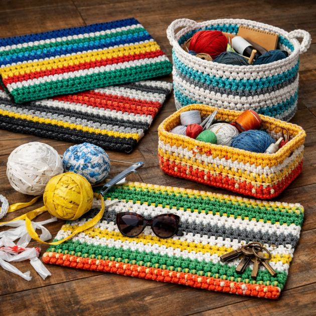 Create colorful mats for entryways, sturdy baskets for organizing, or stylish totes for shopping. The possibilities are endless, and each project helps keep plastic out of the landfill while showcasing your creativity.