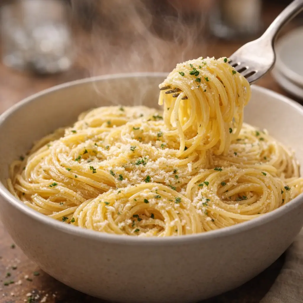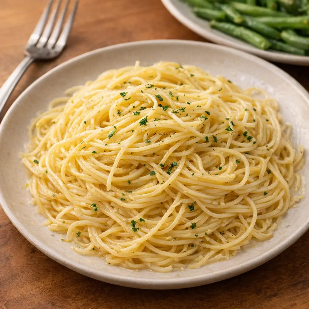 For extra richness, stir in 1/4 cup grated Parmesan or Romano cheese right before serving; it will melt into the buttery garlic sauce and make the noodles feel a little more dressed up.