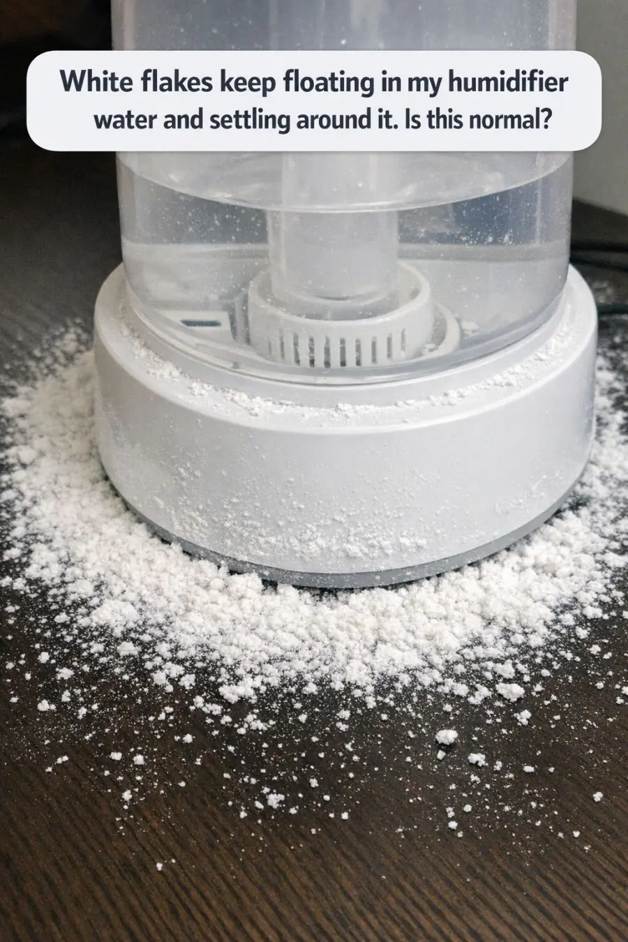 The white flakes you observe in your humidifier are typically mineral deposits. When water is heated or evaporated in a humidifier, the minerals dissolved in the water can precipitate out, forming white flakes. This is especially common in areas with hard water, where the concentration of minerals, particularly calcium and magnesium, is high.