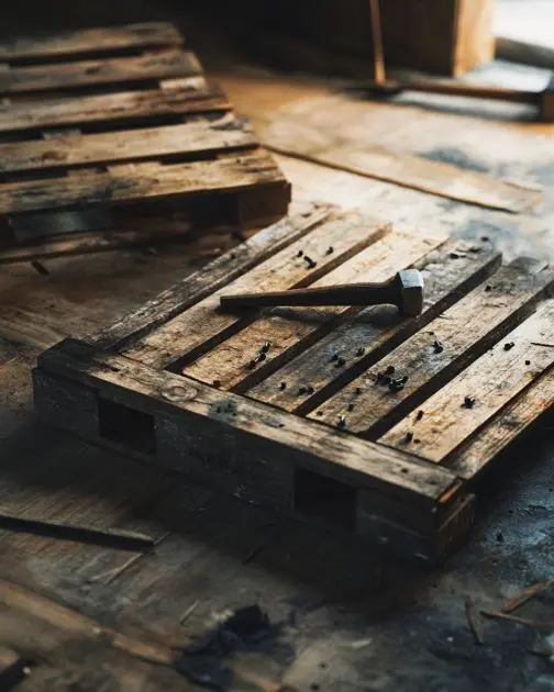 Lay out the pallets to form the base of the chalet, arranging them in a rectangle or square shape.